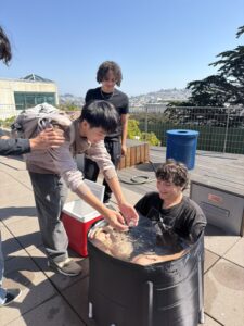 Students engaging in an ice bath for the Self Improvement Club.